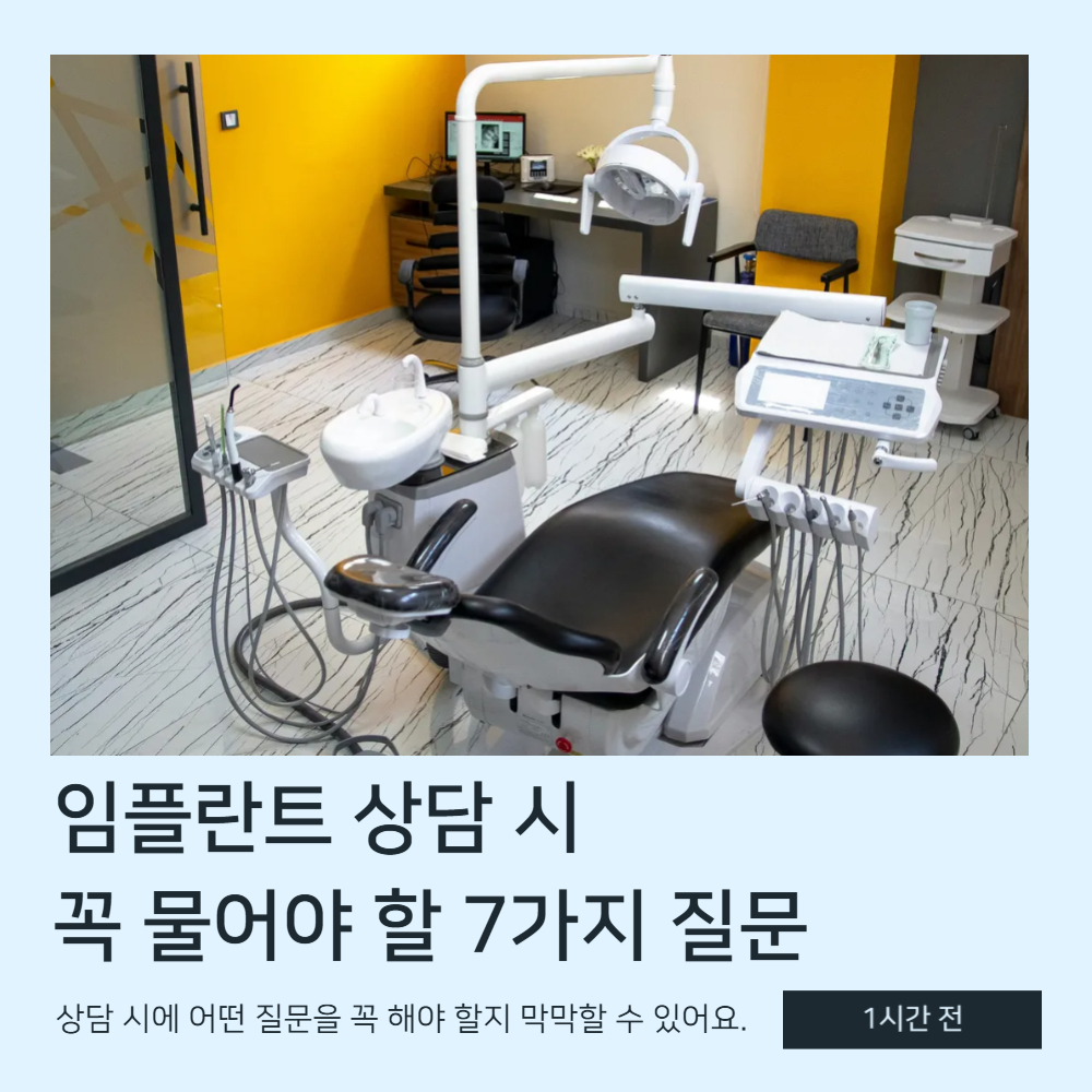 안녕하세요 여러분! 😊 오늘은 많은 분들이 고민하고 있는 임플란트에 대해 이야기해볼까 해요. 혹시 여러분도 치아가 빠져서 임플란트를 고려 중이신가요? 임플란트는 자연치아와 유사한 기능과 외관을 제공해 주지만, 상담 시에 어떤 질문을 꼭 해야 할지 막막할 수 있어요. 그래서 제가 여러분께 도움이 될 만한 임플란트 상담 시 꼭 물어야 할 7가지 질문을 준비했답니다! 함께 알아봐요~