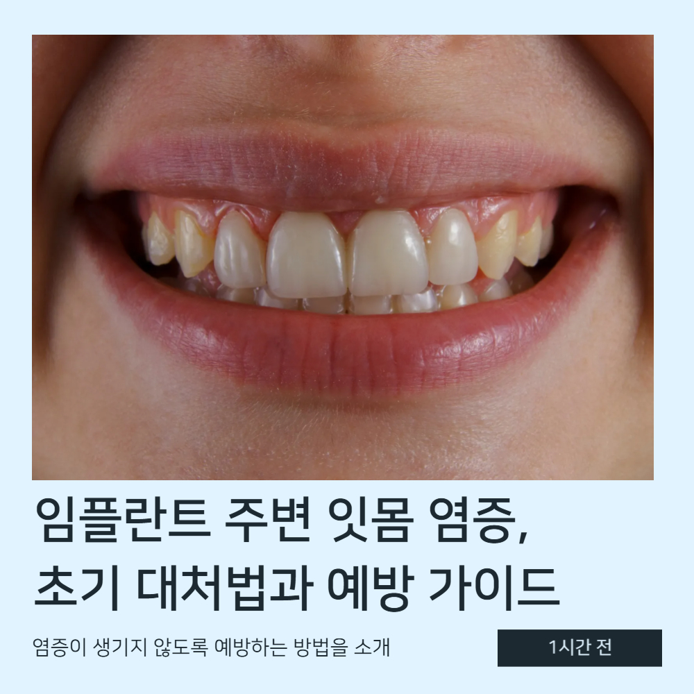 안녕하세요, 여러분! 😊 임플란트를 받고 난 후 잇몸 주변에 염증이 생겨 걱정이 되시나요? 저도 임플란트를 한 뒤 처음엔 염증 때문에 많이 당황했었는데요, 다행히도 올바른 대처법과 예방 방법을 알게 되면서 많은 도움이 되었답니다. 오늘은 임플란트 주변 잇몸 염증, 초기 대처법과 예방 가이드를 함께 알아보려고 해요. 이 글을 통해 염증을 효과적으로 관리하고, 앞으로는 염증이 생기지 않도록 예방하는 다양한 방법을 소개해드릴게요. 여러분의 건강한 임플란트를 위해 꼭 필요한 정보들이니까 끝까지 함께 해주세요! 😄