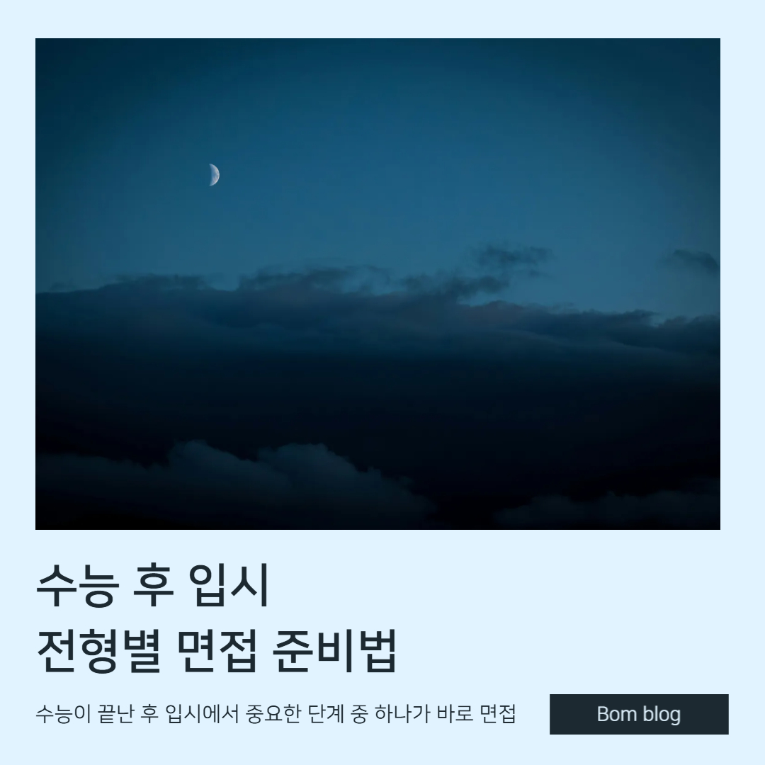 수능이 끝난 후, 대학 입시에서 중요한 단계 중 하나가 바로 면접입니다. 각 대학별로 면접 방식이 다르며, 이에 따라 준비 방법도 다양하게 달라집니다. 이 글에서는 수능 이후 진행되는 대학별 면접 유형과 준비 팁, 주요 예상 질문과 답변 전략에 대해 알아봅니다. 입시 면접에서 좋은 인상을 남기고 원하는 대학에 합격하기 위한 필수 정보를 제공합니다.